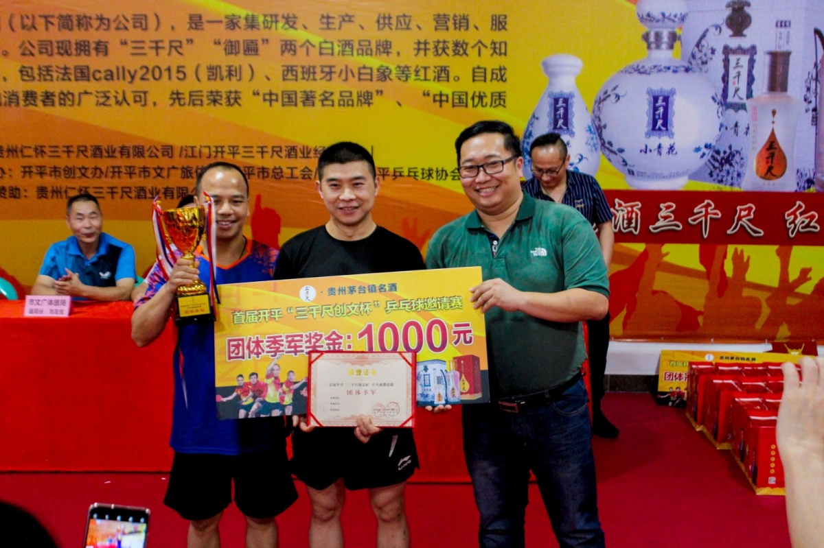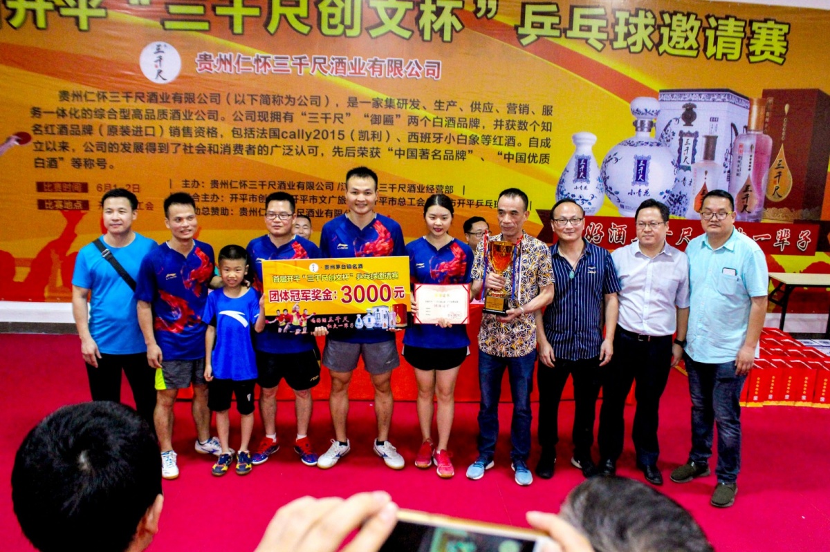 6月2日,首届开平“三千尺创文杯”乒乓球邀请赛完美落幕。本届乒乓球邀请赛为期两天,由江门开平三千尺酒业经营部、开平市创文办、开平市文广旅体局、开平市总工会、江门开平市开平乒乓球协会共同联合举办,旨在传承乒乓文化,发扬国球精神,调动群众的全民运动热情,推动全民健身事业发展。