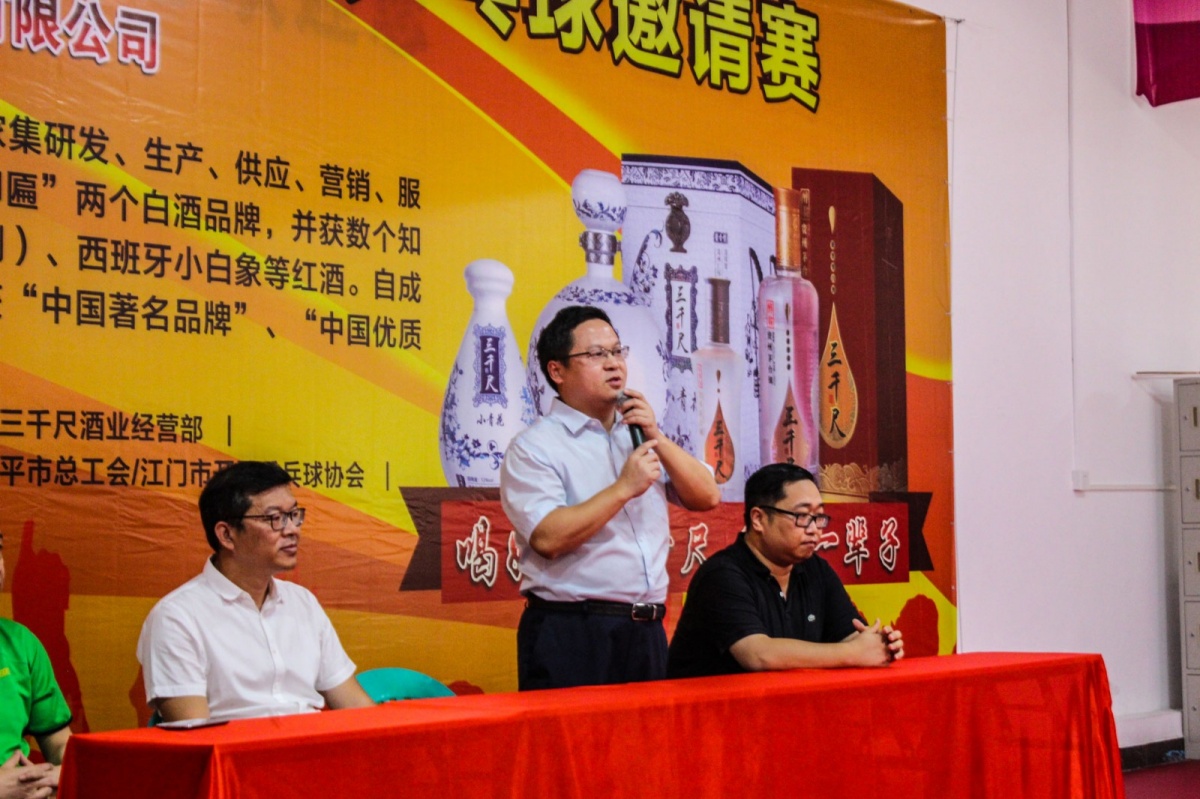 比赛当天我们有幸邀请到:市委办常务副主任刘飞同志,市委宣传部常务副部长/市创文办副主任荆筱磊同志,市文广体旅党组书记/局长谭意军同志,市文广体旅局副局长刘友生同志,联同贵州仁怀三千尺酒业有限公司销售副总经理王海才先生、三千尺酒业江门总经理周锡献先生,作为特邀嘉宾出席了本次邀请赛。